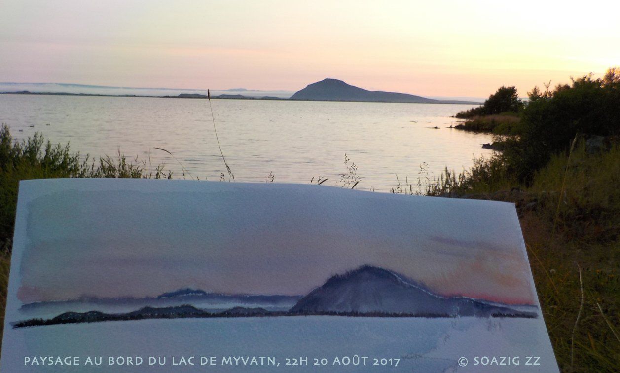 Elle pratique aussi en mode naturaliste et sensible de l’éducation à l’environnement. Soazig utilise ce support pour garder une mémoire visuelle : les écrits et dessins traduisent des émotions, rencontres, expériences vécues au loin ou tout près reliées au quotidien. Elle a traversé l’Europe d’Est en Ouest, séjours en Afrique du Nord , la Turquie en goélette, la Bosnie (travail mémoriel sur la guerre avec des adolescents) En 2002, Soazig découvre par hasard un outil devenu privilégié, le pinceau chinois, et les encres. Ces outils lui permettent de croquer très vite des situations, et réaliser des portraits interview. Elle décide de faire du reportage dessiné sur des événements, en commande ou à titre personnel, et multiplie ses interventions en France, en résidence, sur des festivals, colloques. Elle suit un été une tournée avec le Théâtre des 7Lieues : son carnet de route est sélectionné et exposé à Clermont-Ferrand, lauréate du magasine Grands Reportages en 2002. Fascinée par L’Islande depuis toujours, pays de feu et de glace, Soazig décide de partir réaliser son rêve en 2016. En 3 séjours , enchantée des lumières et paysages contrastés, elle remplit ses carnets de textes et croquis de faune, flore et humains! Depuis avril 2017, elle s’intéresse au vécu quotidien et au lien particulier qu’entretiennent les islandais avec leur territoire, leur lien à la nature. Un projet transversal avec des classes ici et là-bas est en cours.